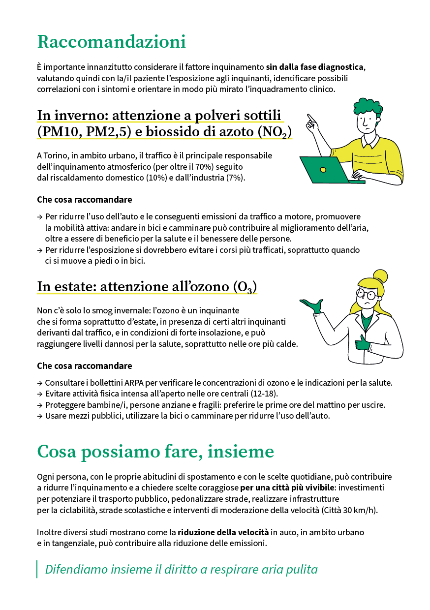 Informare pazienti sugli effetti dell’inquinamento e promuovere comportamenti quotidiani protettivi – come ridurre l’uso e la velocità in auto, favorendo la mobilità attiva, porre attenzione agli orari di esposizione all’ozono estivo e proteggere le persone fragili – rappresenta un atto di salute pubblica.