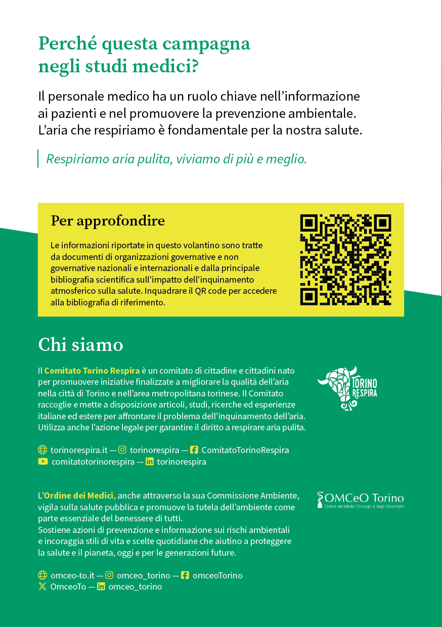 Si può richiedere il materiale informativo in formato cartaceo a info@torinorespira.it o a presidenza@omceo.to.it